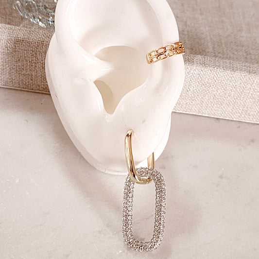 Aretes Eslabones Dorado y Plateado Zirconias, Chapa de Oro