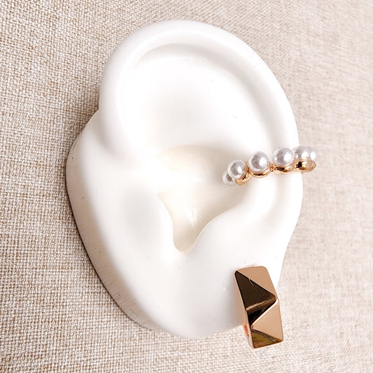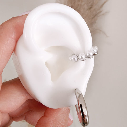 Ear Cuff Chunky Perlas, Chapa de Oro Blanco