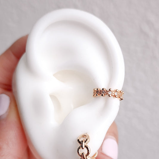 Ear Cuff Chunky Perlas, Chapa de Oro Rosa