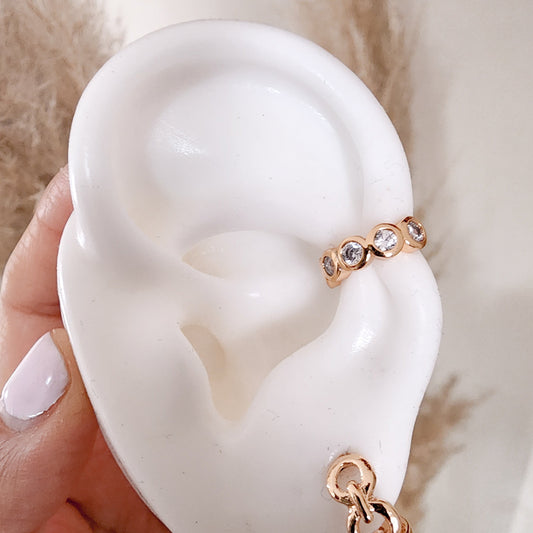 Ear Cuff Con Cinco Zirconias Redondas Biseladas, Chapa de Oro Rosa
