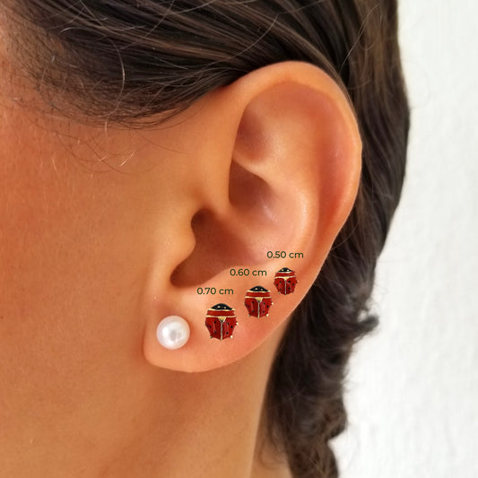 Arete Catarina Esmaltada Inflada, Chico, Mediano o Grande, Oro 10K Tipo Broquel