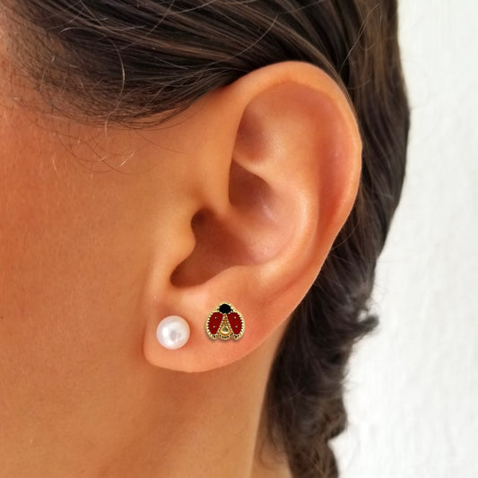 Aretes Ratoncitos Beso Esmaltado, Oro 10K Tipo Broquel