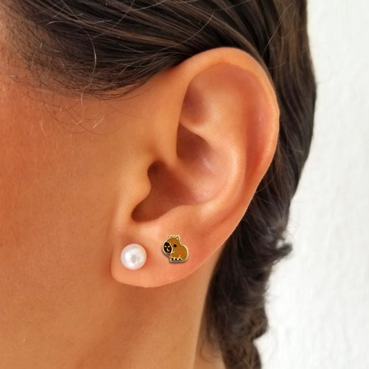 Aretes Capibara Esmaltado, Oro 10K Tipo Broquel