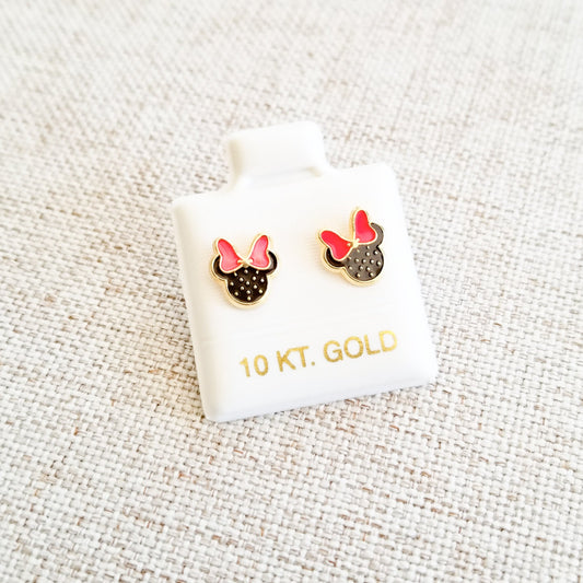Aretes Ratoncita Esmaltado Color, Oro 10K Tipo Broquel