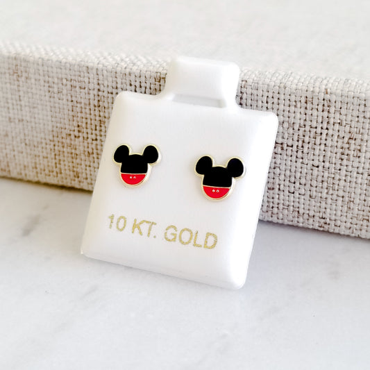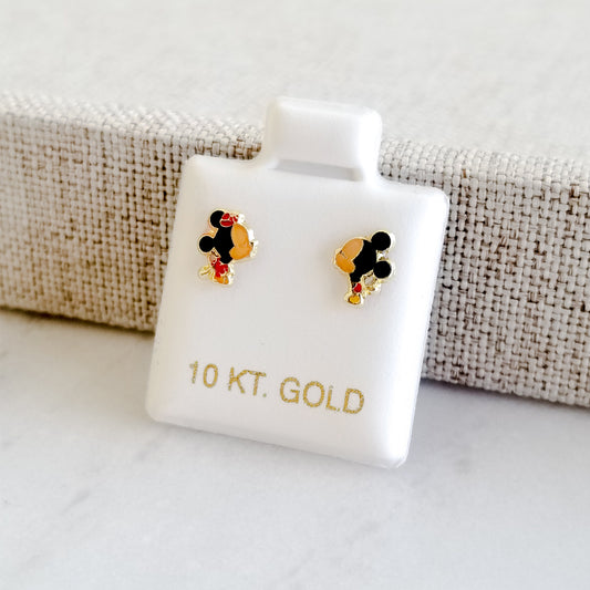 Aretes Ratoncito Esmaltado, Oro 10K Tipo Broquel