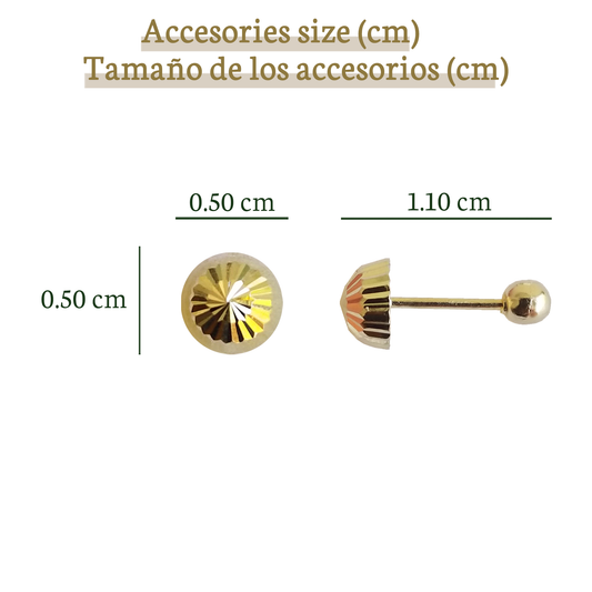 Aretes Hongo Media Esfera Bola Diamantado M, Oro 10K Tipo Broquel