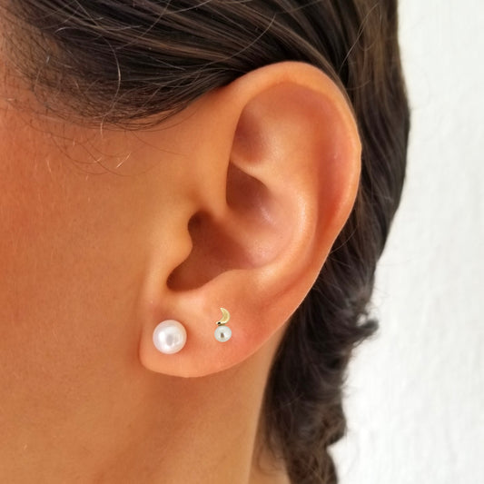 Aretes Luna Tapón con Perla, Tipo Broquel, Oro 10k
