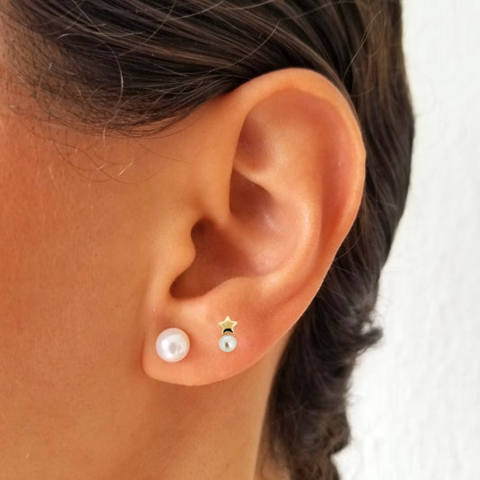 Aretes Estrella Lisa y Perla Oro 10k, Tipo Broquel