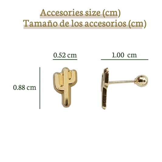 Aretes Forma Cactus, Oro 10K Tipo Broquel
