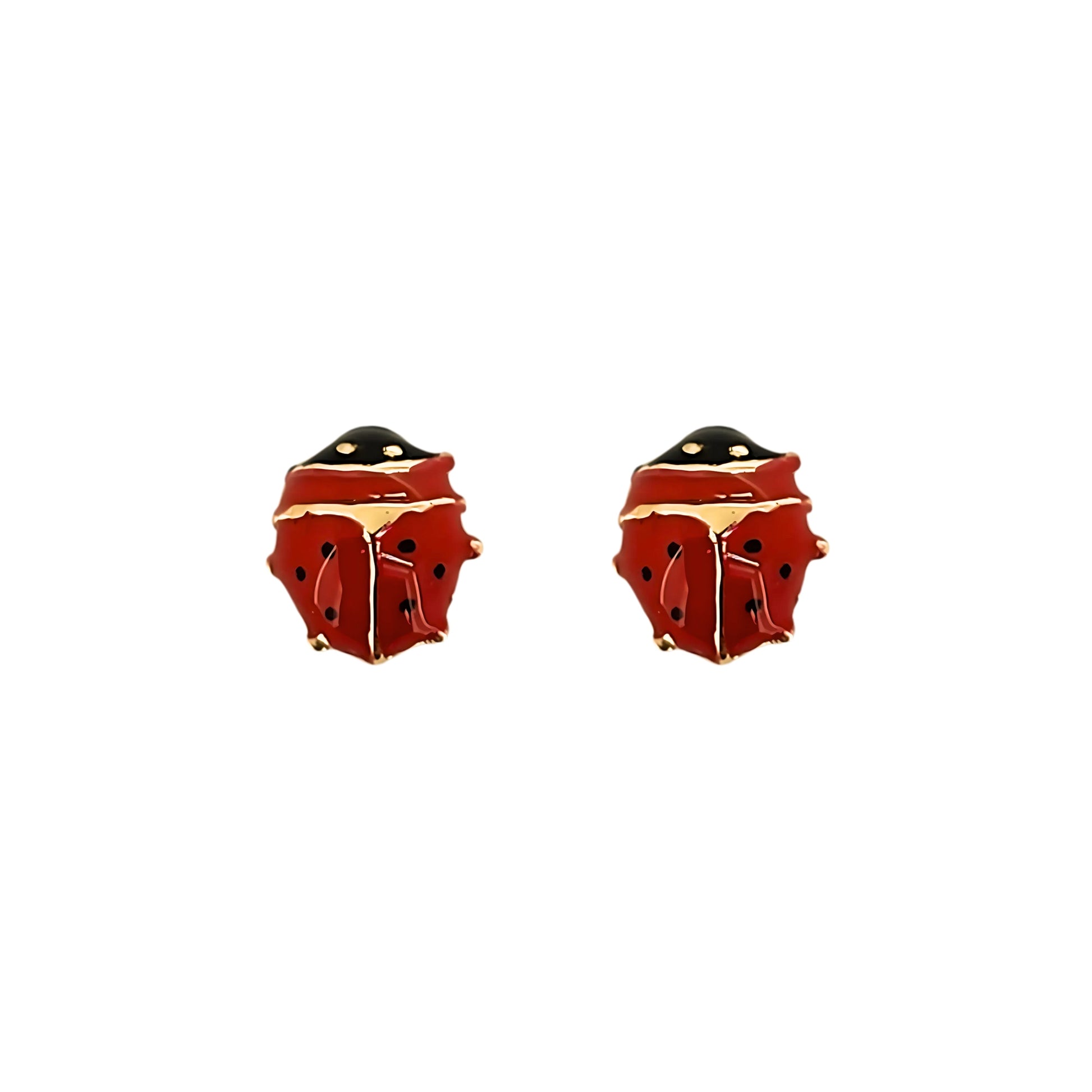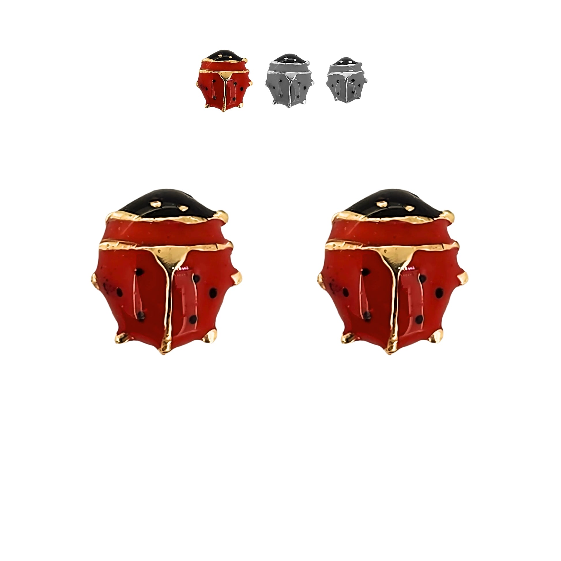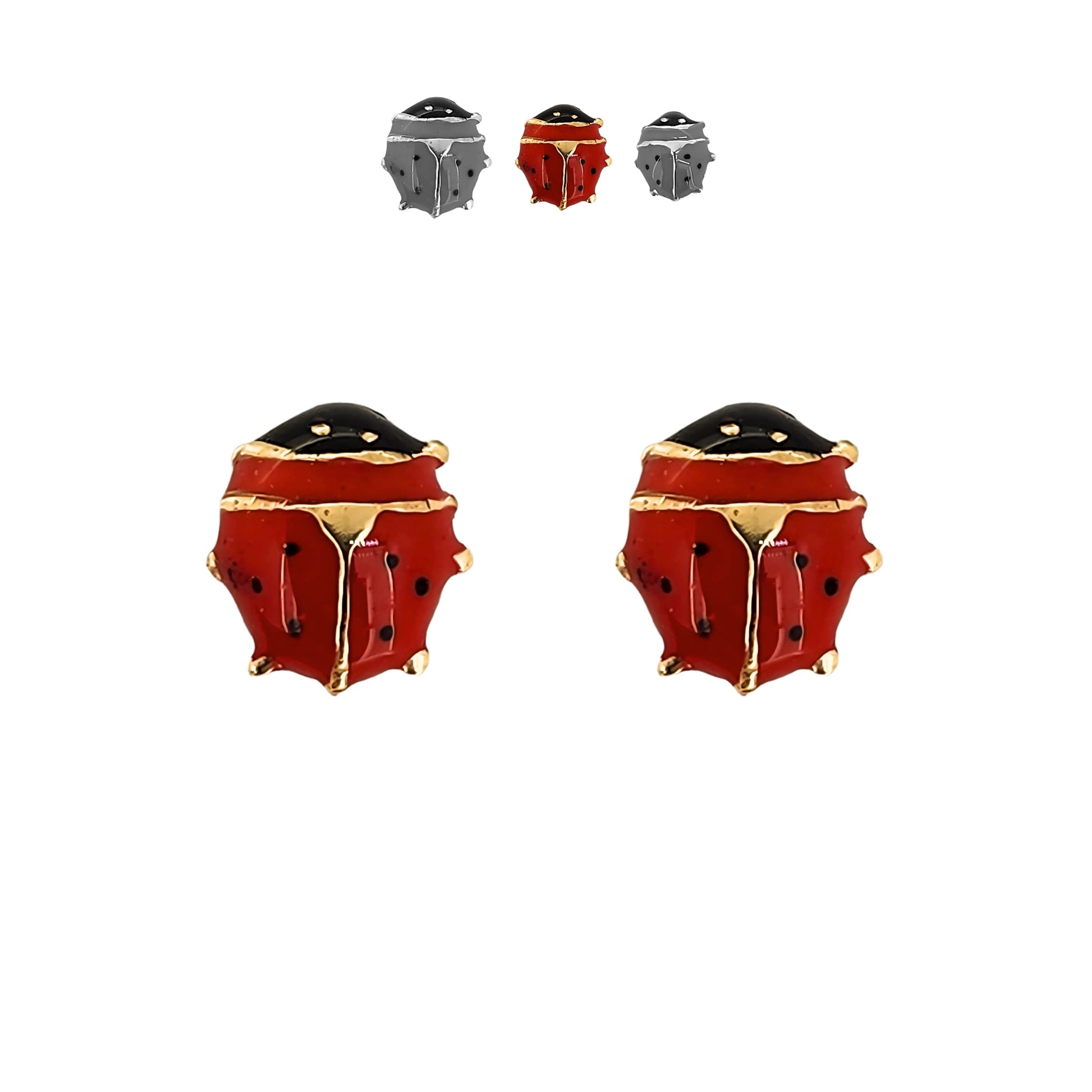 Elegantes aretes en forma de Catarina Esmaltada Inflada, tamaño a elegir; chico mediano o grande, en oro sólido de 10K. Arete tipo broquel. Perfecto para segundas perforaciones.