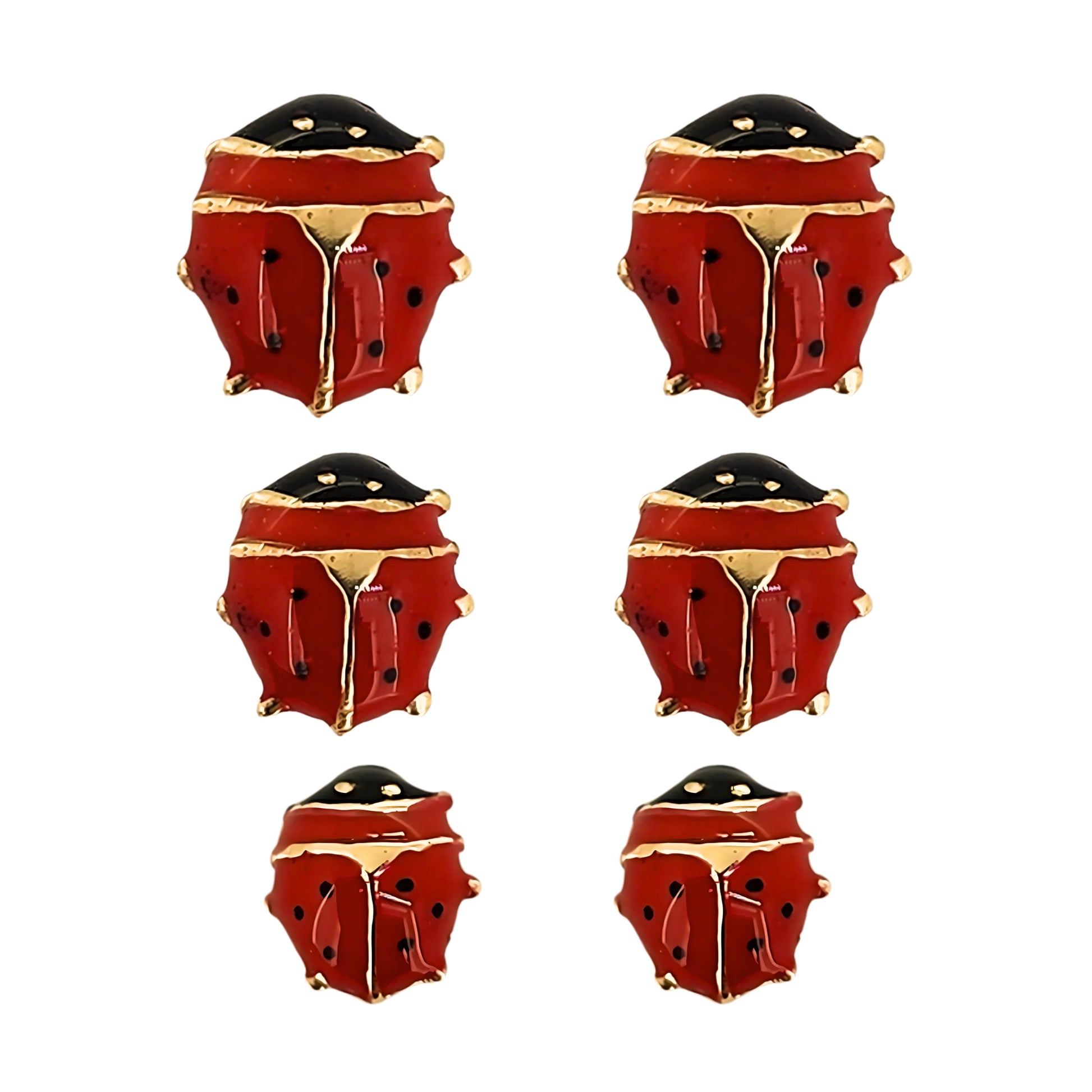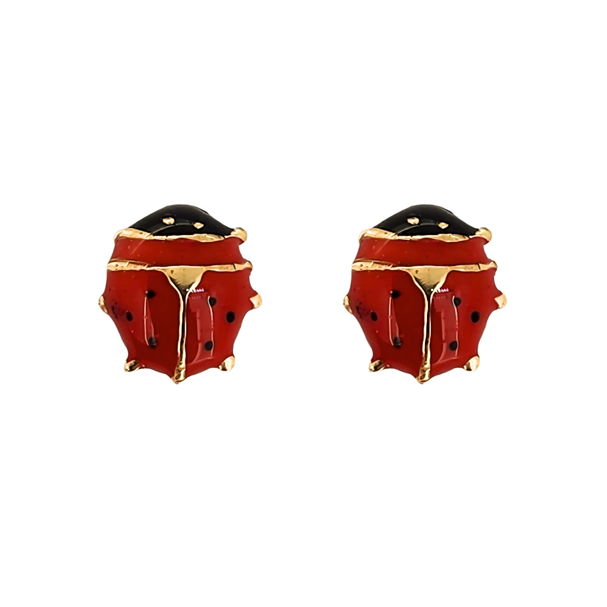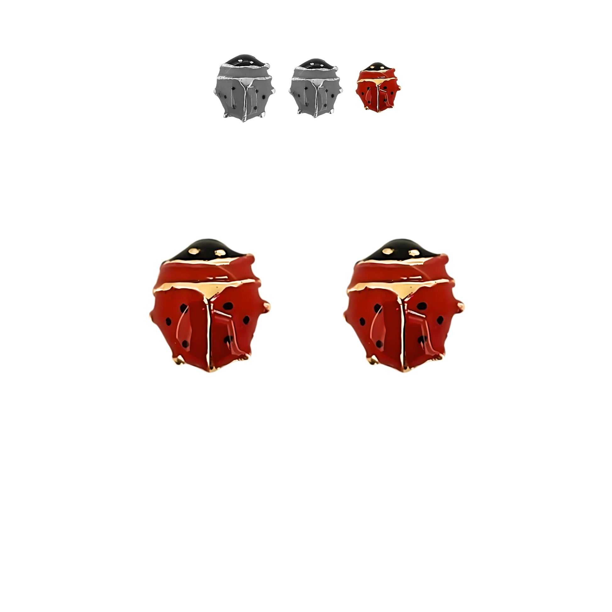 Elegantes aretes en forma de Catarina Esmaltada Inflada, tamaño a elegir; chico mediano o grande, en oro sólido de 10K. Arete tipo broquel. Perfecto para segundas perforaciones.