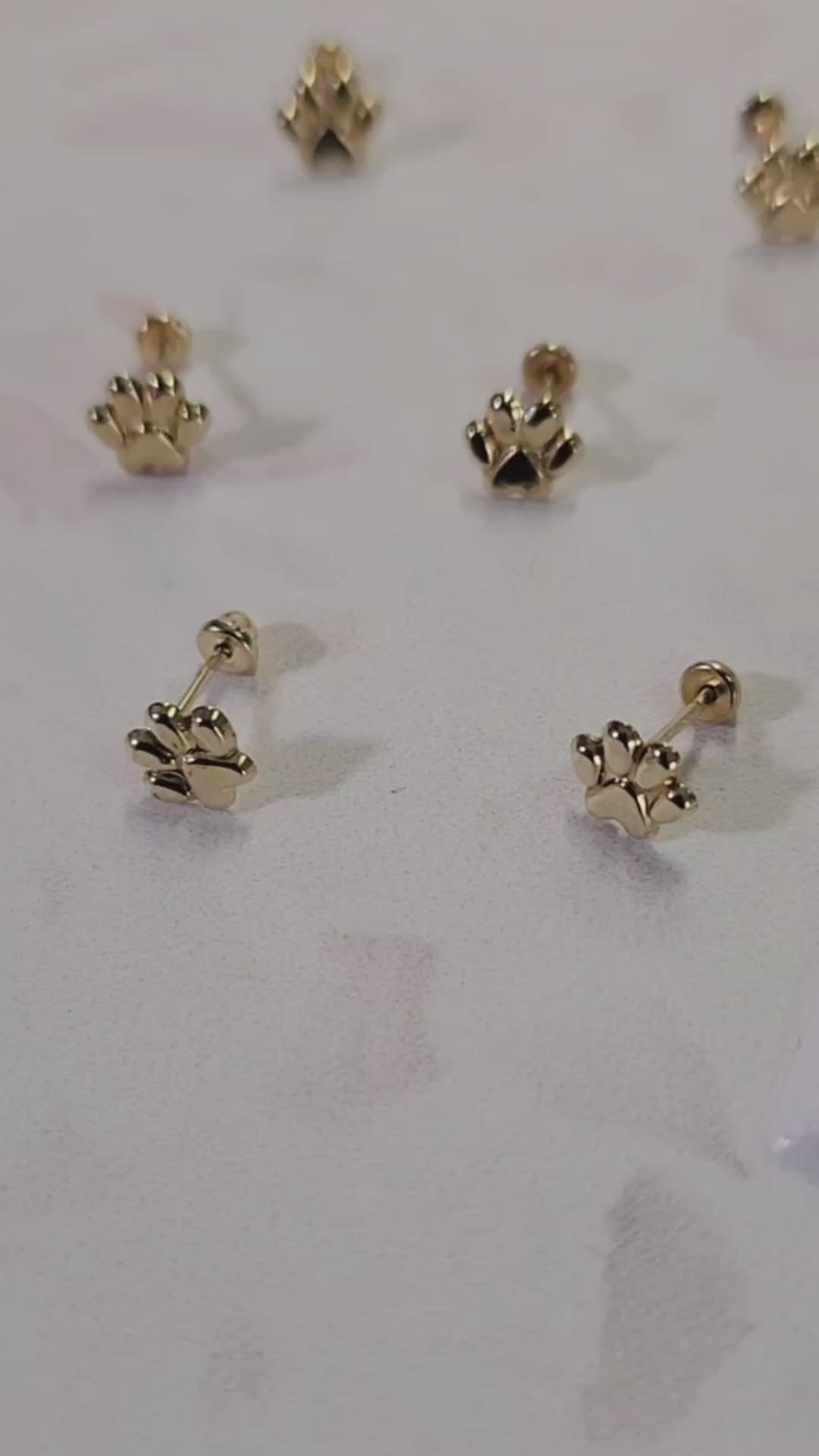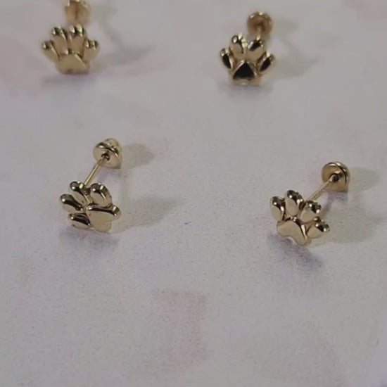 Hermosos aretes Huella de Perro / Gato en sólido de 10K, arete tipo broquel. Perfecto para segundas perforaciones.