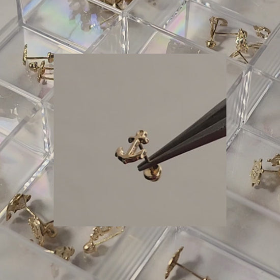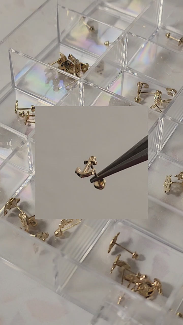 Hermosos aretes en forma de Ancla Lisa en Oro de 10K, arete tipo broquel.