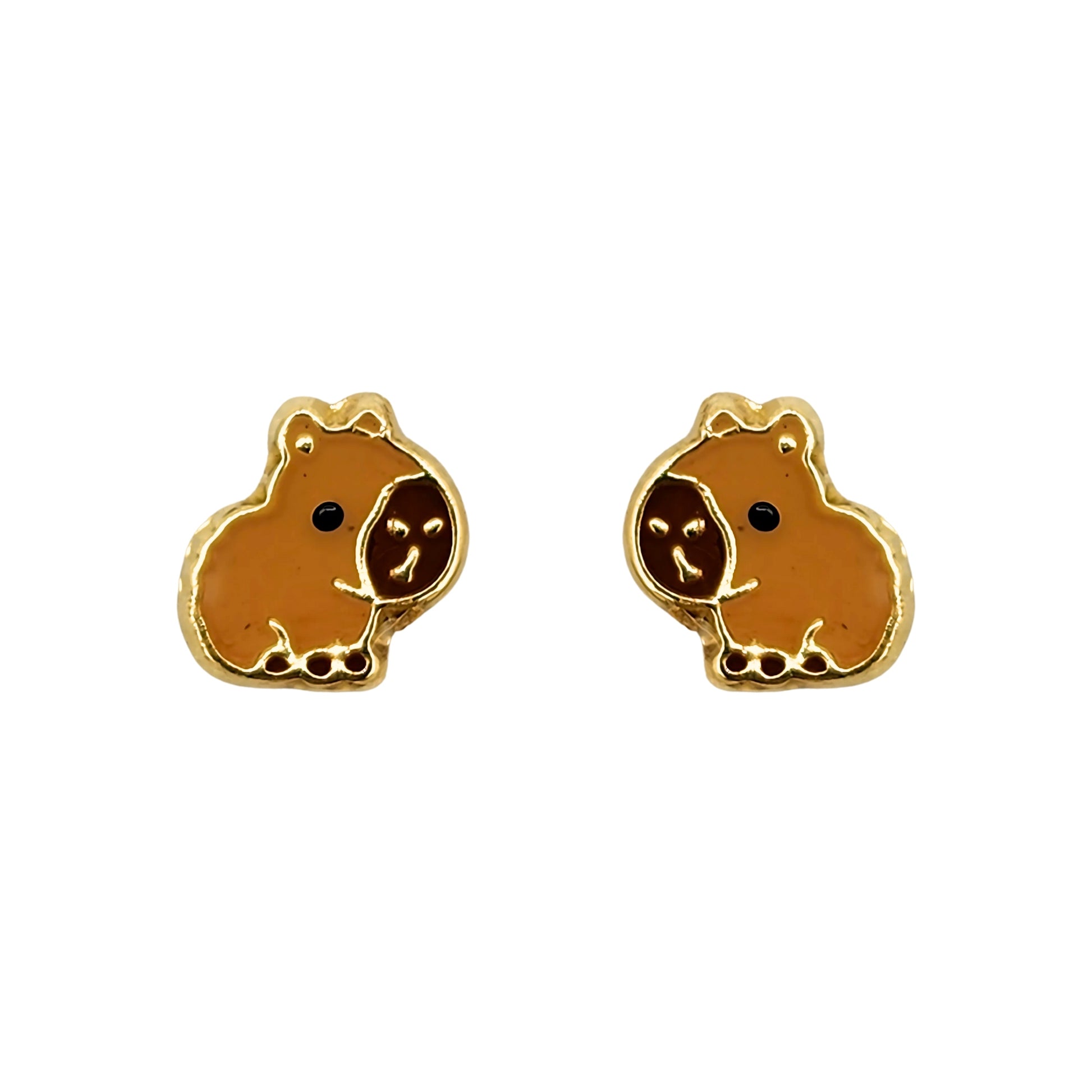 Aretes Capibara Esmaltado, Oro 10K Tipo Broquel