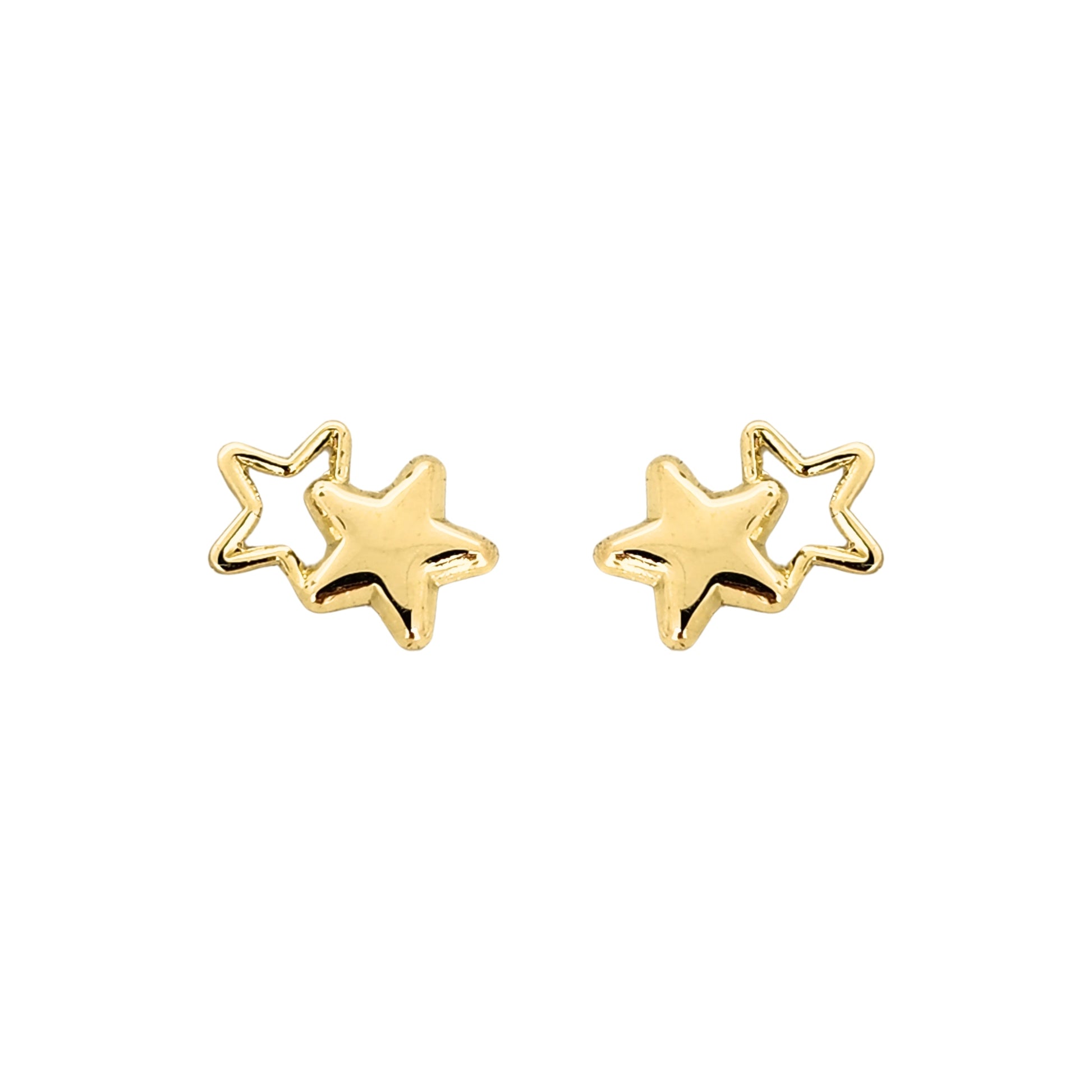 Aretes Estrella Doble Silueta, Oro 10K Tipo Broquel