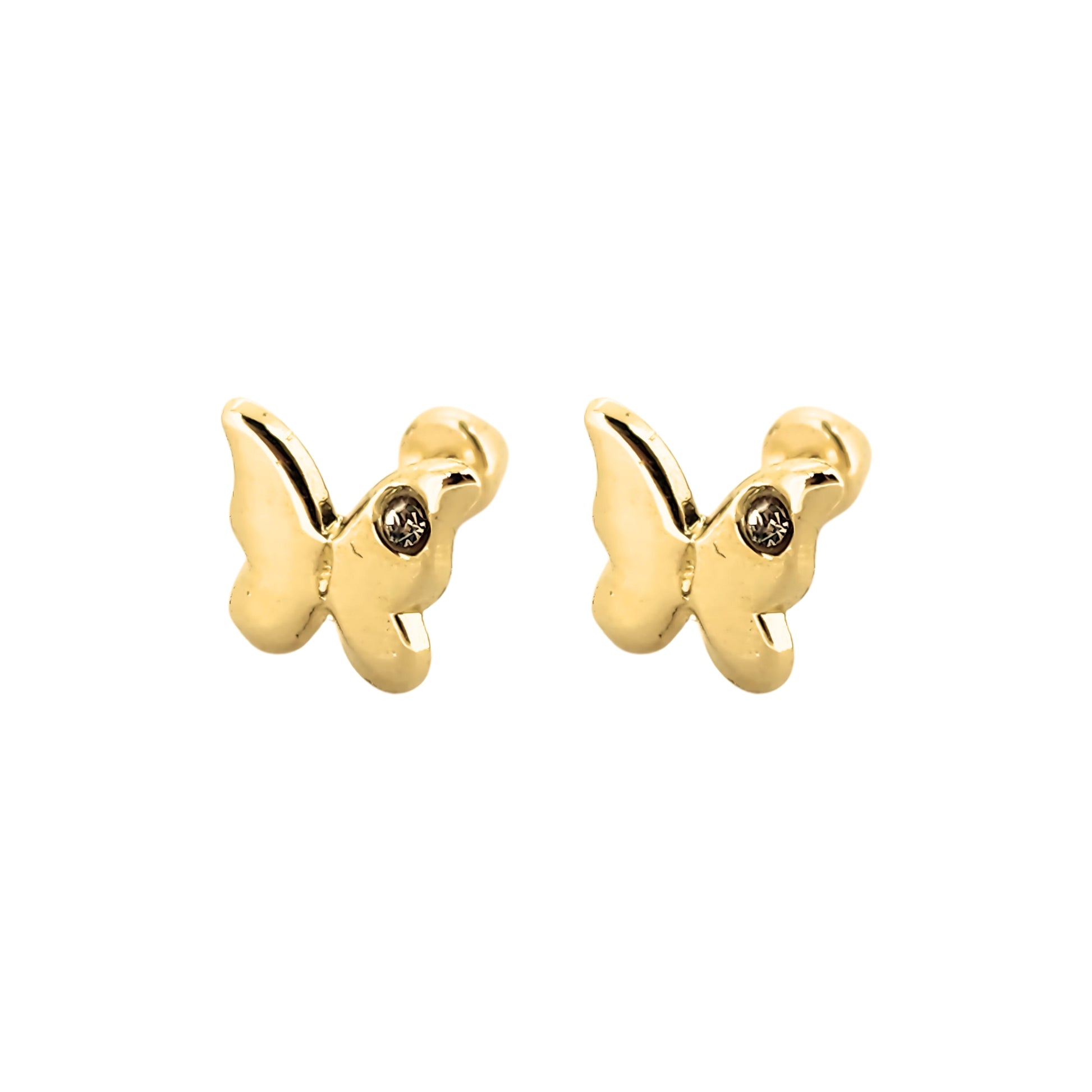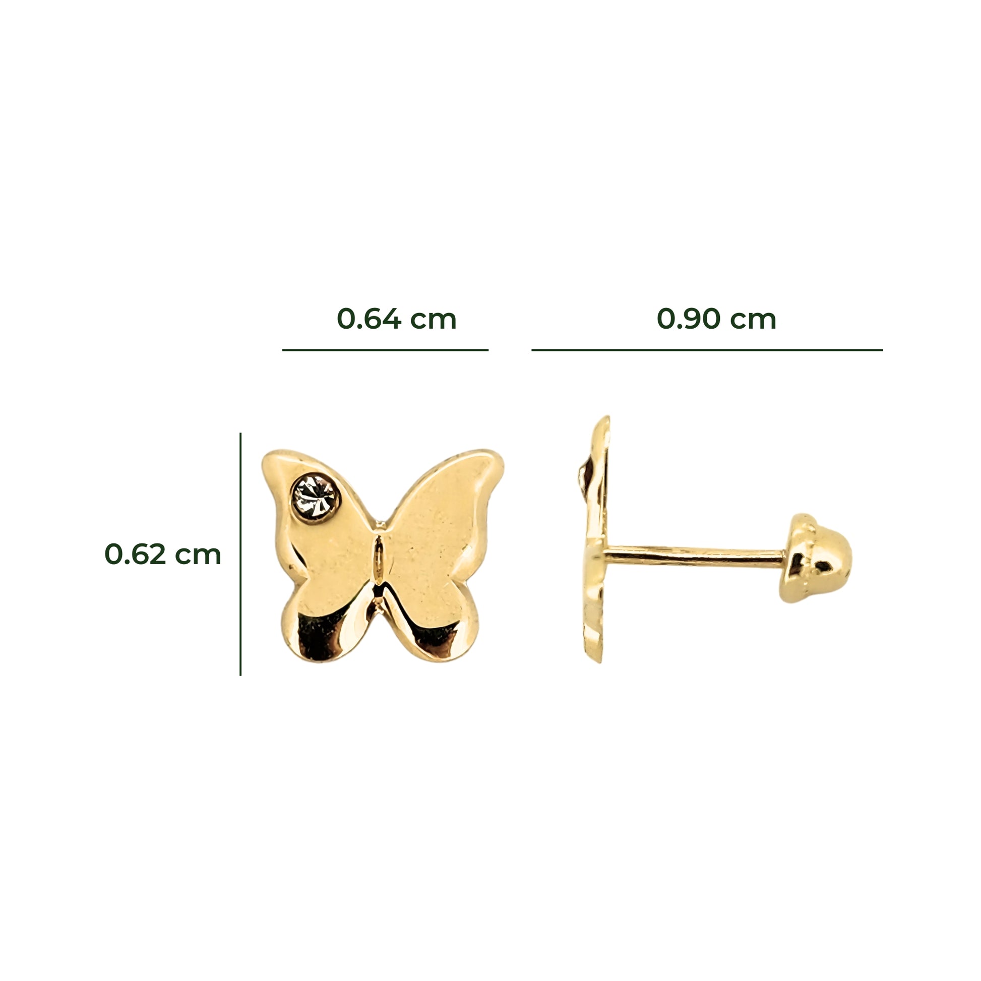 Hermosos aretes en forma de Mariposa con Zirconia en Oro de 10K, arete tipo broquel.