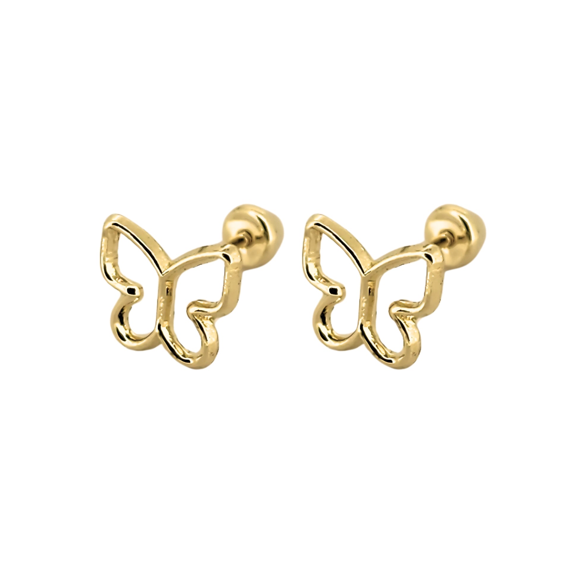 Hermosos aretes en forma de Mariposa Silueta en Oro de 10K, arete tipo broquel.