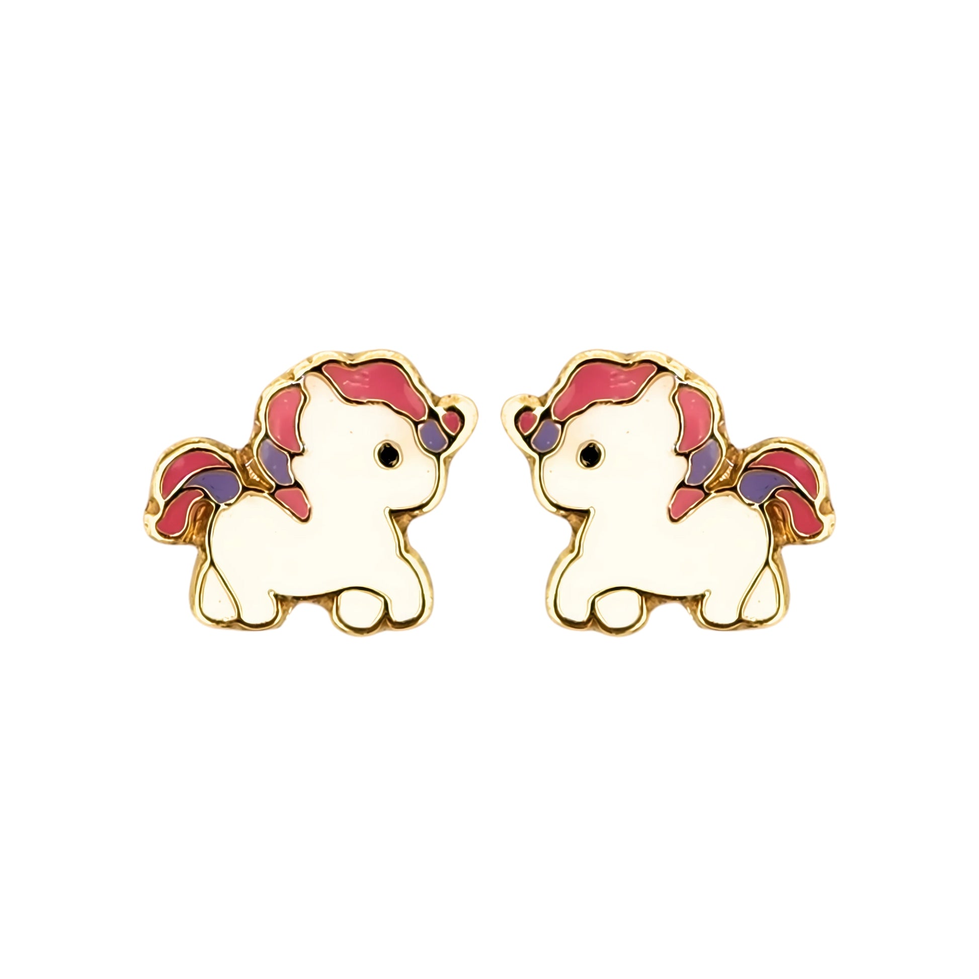 Aretes Unicornio Bebe Esmaltado, Oro 10K Tipo Broquel